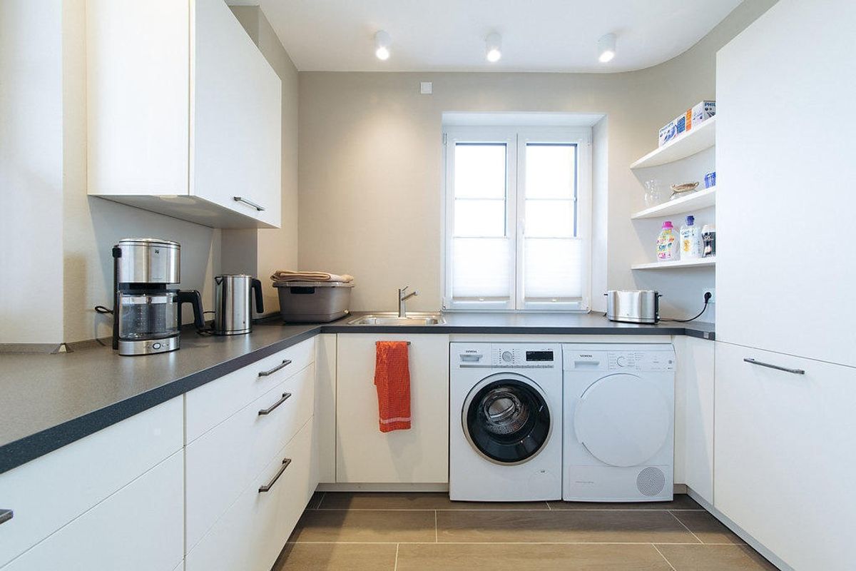 - Küche mit Spülmaschine, Backofen, Mikrowelle, Kühlschrank mit Gefrierfach, Kaffeemaschine, Toaster, Wasserkocher uvm.