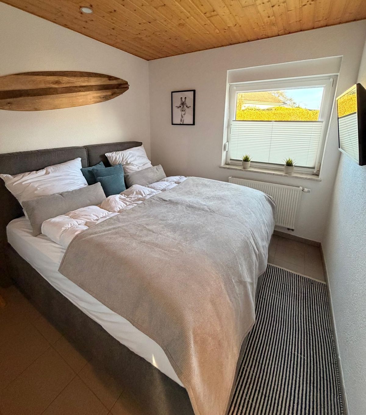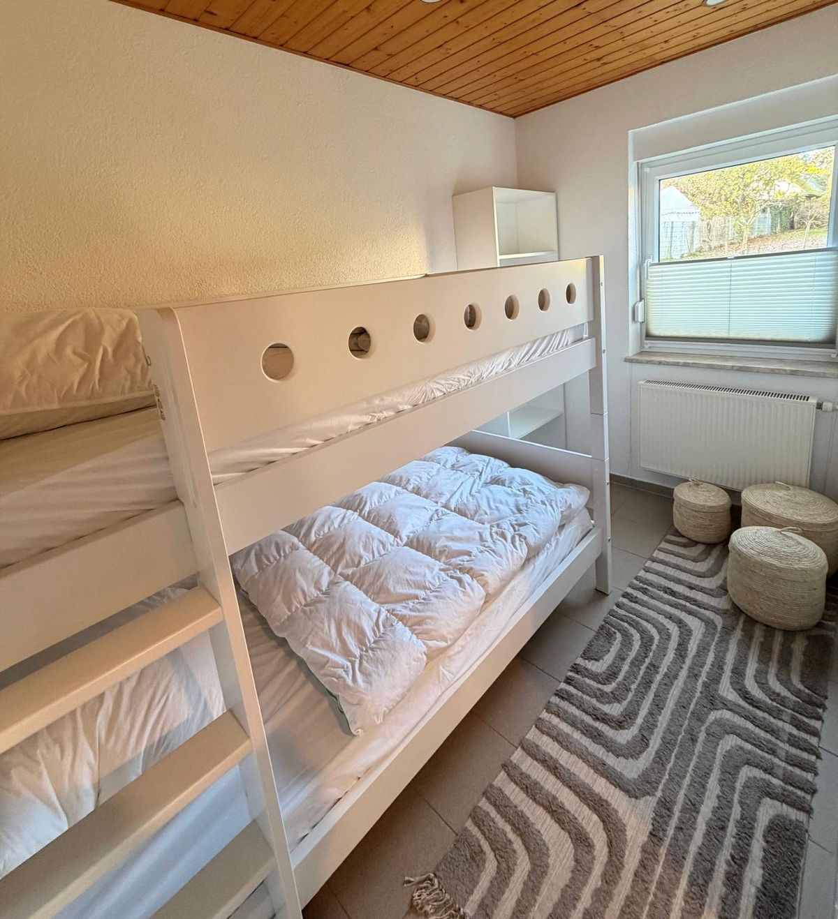 Das stylische Häuschen überzeugt durch ein durchdachtes Raumkonzept und bietet mit drei Schlafzimmern ausreichend Platz für bis zu fünf Personen. Ein Schlafzimmer ist mit einem komfortablen Doppelbett ausgestattet, ein weiteres verfügt über ein Etagenbett und eignet sich besonders gut für Kinder, während das dritte Schlafzimmer mit einem Einzelbett zusätzlichen Rückzugsraum bietet. Die Räume sind modern, freundlich und mit viel Liebe zum Detail eingerichtet. Wäschepakete (Bettwäsche und Handtücher) sind über Übernachtungspreis inkludiert.